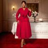 Plus Size Women's Elegant V-Neck 3D Floral Long Sleeve Ruffled Party Dress