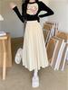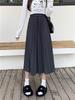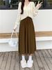 Korean Style Plus Size Pleated Midi A-line Skirt with High Waist Elastic