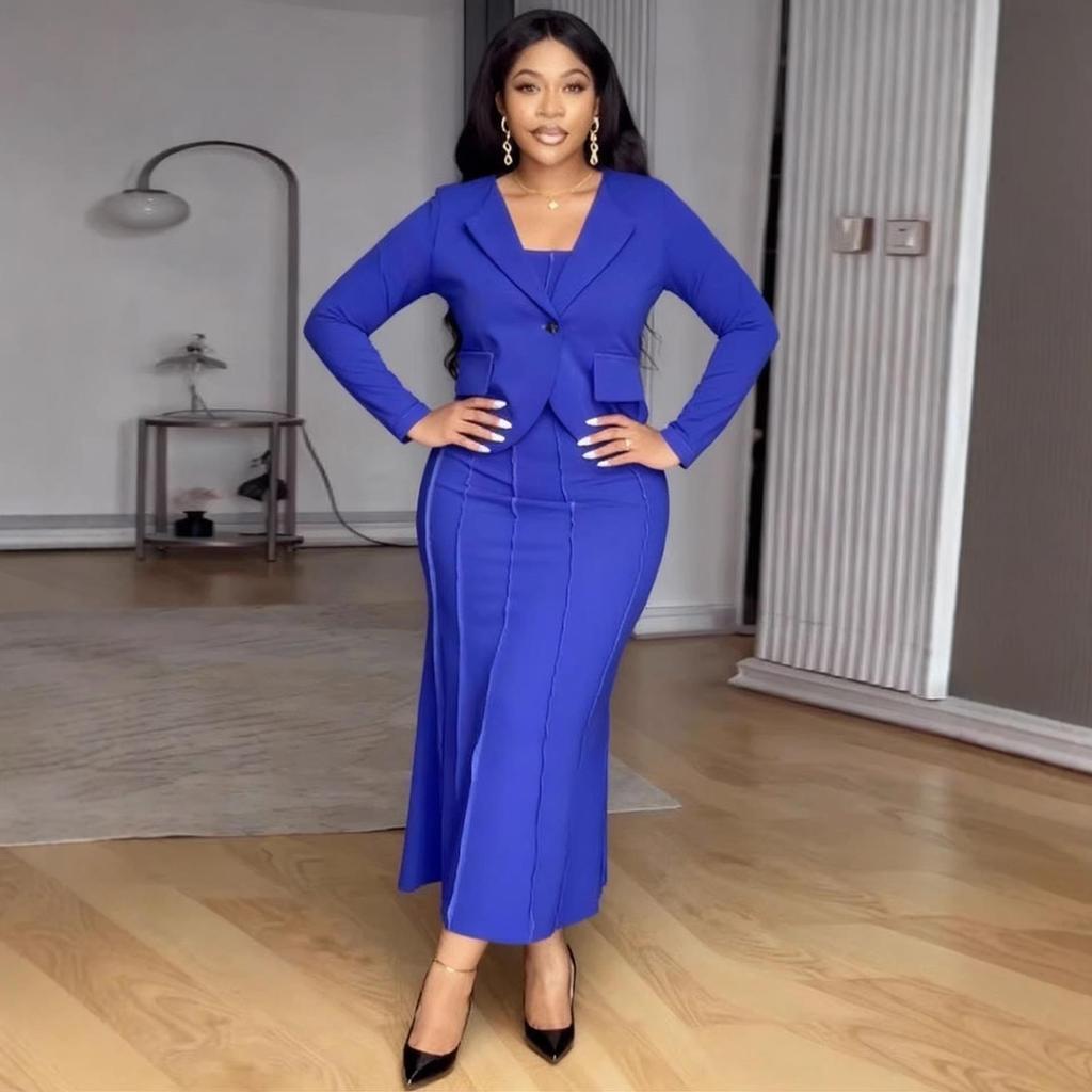 Discover the perfect blend of elegance and comfort with this exquisite Women's Plus Size Camisole Dress & Jacket Set. Crafted from high-quality polyester, this set boasts a slimming square neck design and a cinched waist for a flattering silhouette. The elegant long dress is perfect for commuting or date nights, offering both style and versatility.