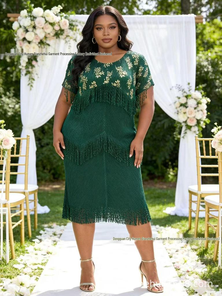 Miyaki Pleated Plus-Size African Dress with Fringe and Hot Stamping - New High-End Style