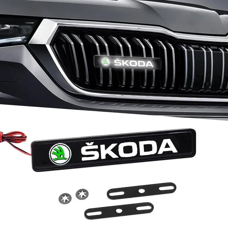 2025 New 1/2PCS Car Decorative Light LED Front Hood Grille Emblem Badge Decor For Skoda Octavia Fabia RS Kamiq Kodiaq Rapid SCAL