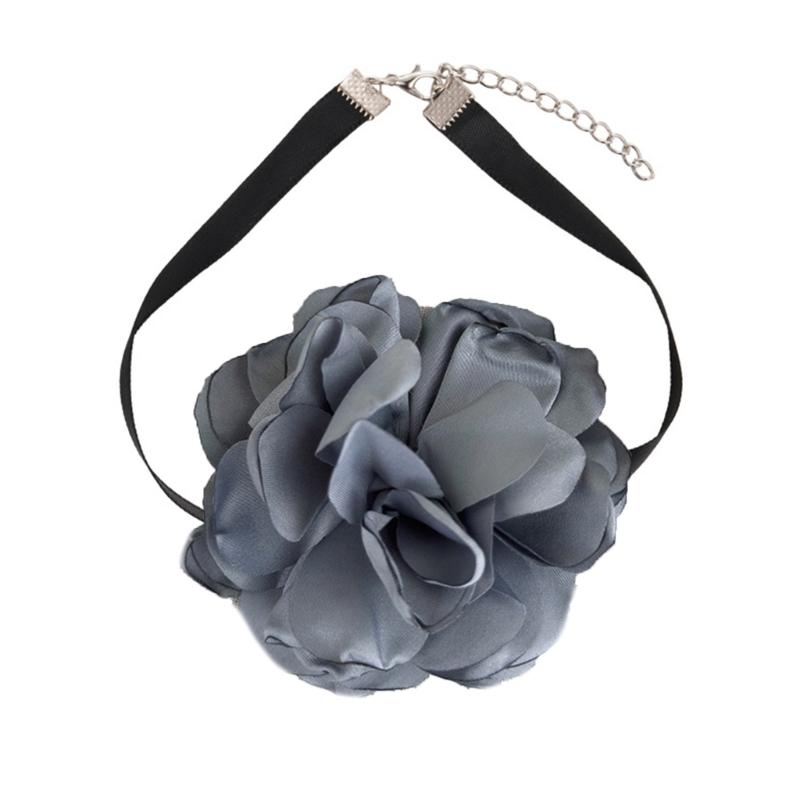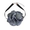 Gothic Fabric Flower Choker Necklace Exaggerated Floral Pattern Pendant Clavicular Chain Charm for Parties and Weddings