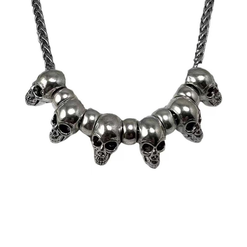 Metal Skull Pendant Necklace Punk Style Choker Necklace Hip Hop Clavicle Chain Necklace Gothic Jewelry for Eboy Men