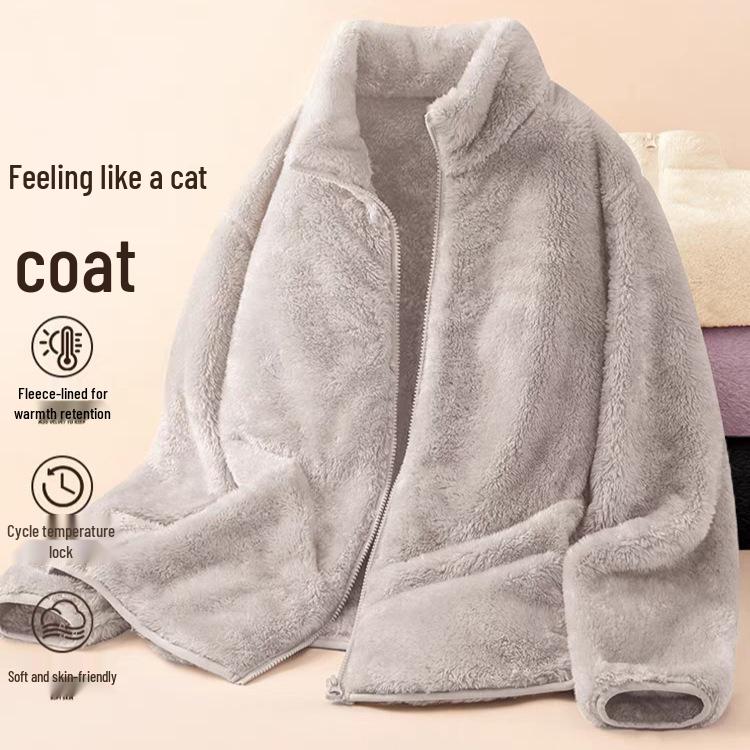 Women's Double-Sided Fleece Jacket - Short Sleeve, Loose, Plus Velvet, Thickened for Autumn/Winter Warmth, Coral & Sherpa Fleece Pajamas.