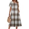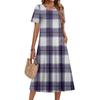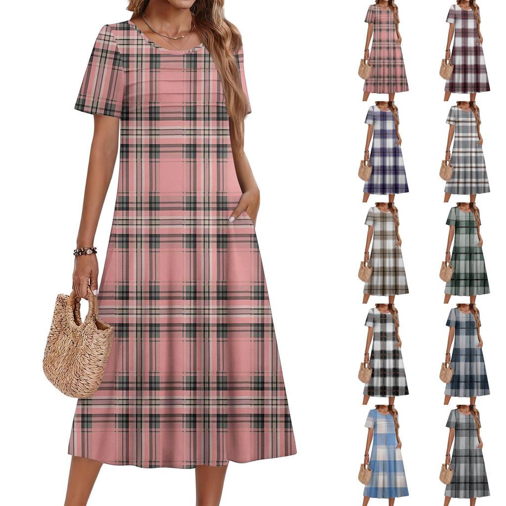 Ladies' Plaid Printed Casual And Fashionable Short Sleeved Round Neck Dress