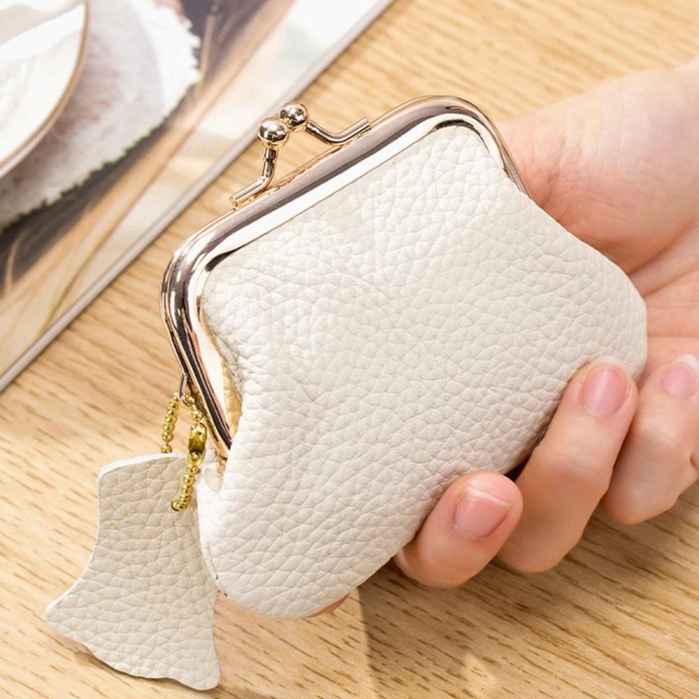 Jewelry Bag Mini Coin Purse Cow Leather Small Item Bag Elegant Kiss Lock Leather Wallet Women