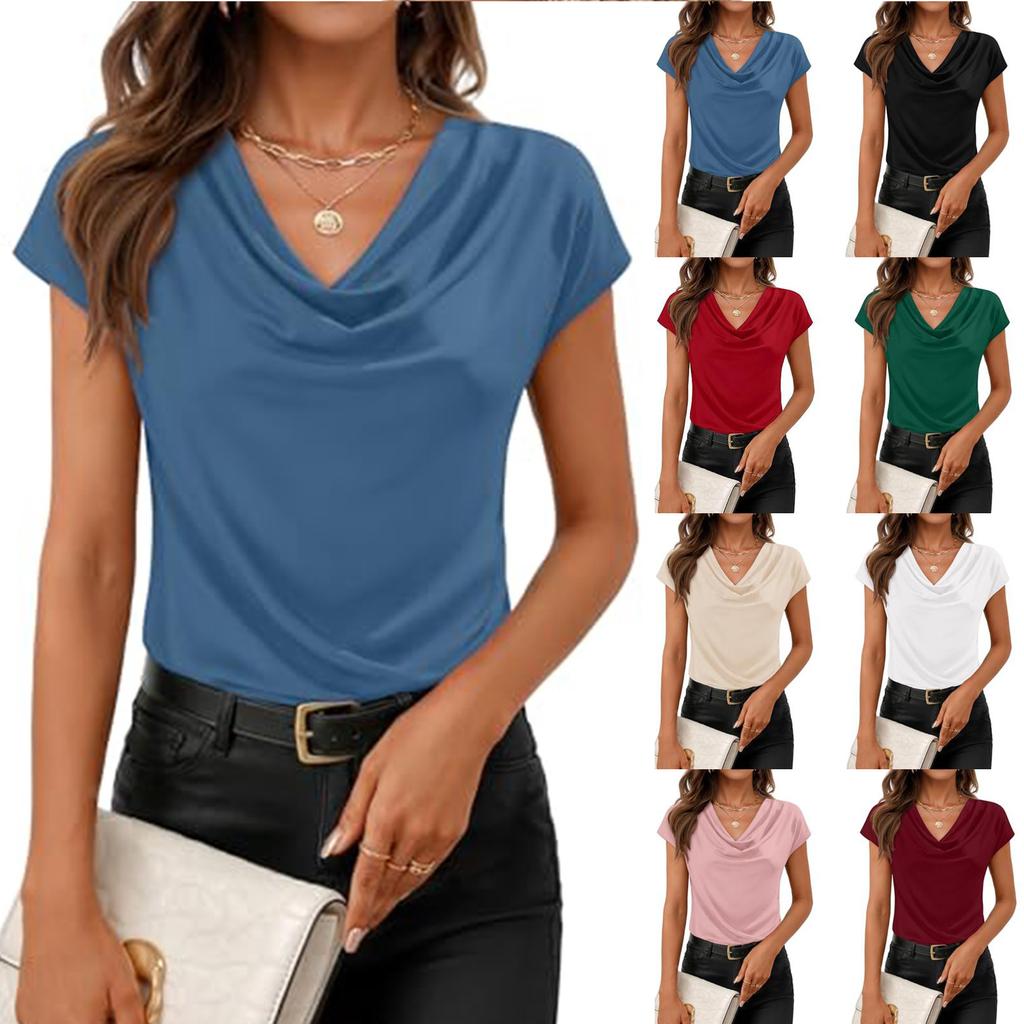 Women's Summer Business Casual Cowl Neck Knit Short Sleeve Tops
