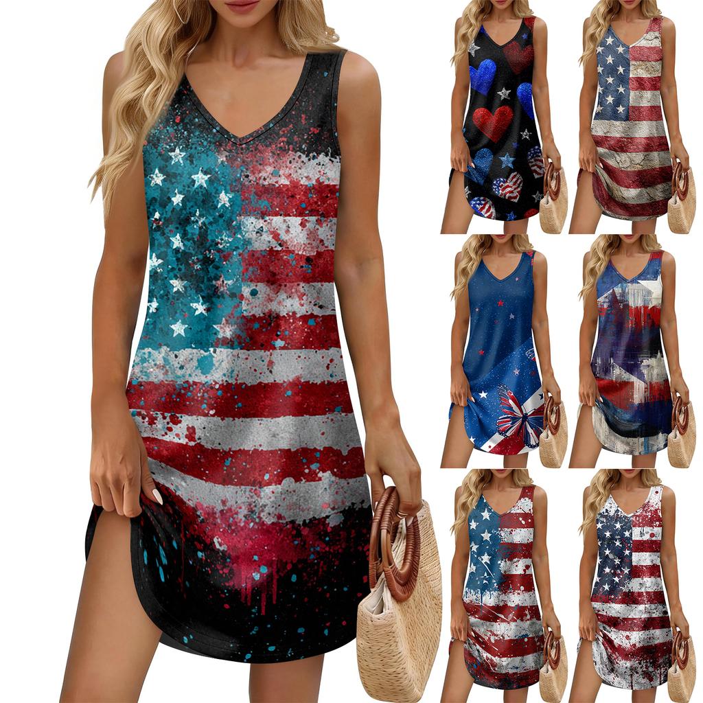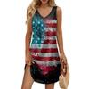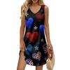 Women's Summer Casual Sun Skirt With Pocket V-Neck Independence Day Printed Loose Vest Dress