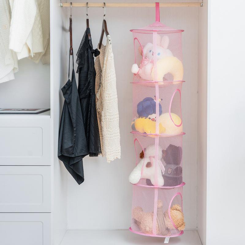 Foldable Plush Animal Storage Net 4 Compartments Hanging Mesh Toy Storage Hammock For Kids Room Toys Gloves Hats Socks