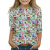 Print Tops For Youth Girls Round Neck 3/4 Sleeves T-Shirts Trendy Tops Outfit Tees