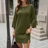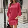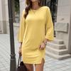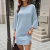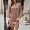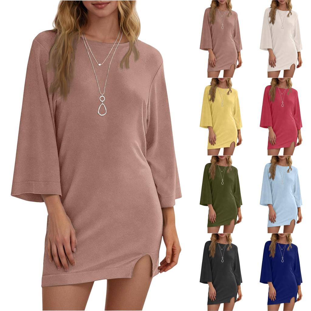 Women's Fashion Casual Hems Split Dress Solided Color Round Neck Sleeve Dress
