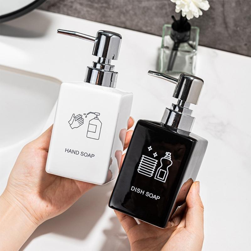 Reusable Press Type Liquid Dispenser Bottle Ceramic NonMetallic Portable Design for Shampoo Soap Lotion Friendly Home Use