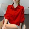 Cotton Solid Color Shirt for Women Summer Loose and Breathable Top Lantern Sleeve Shirt