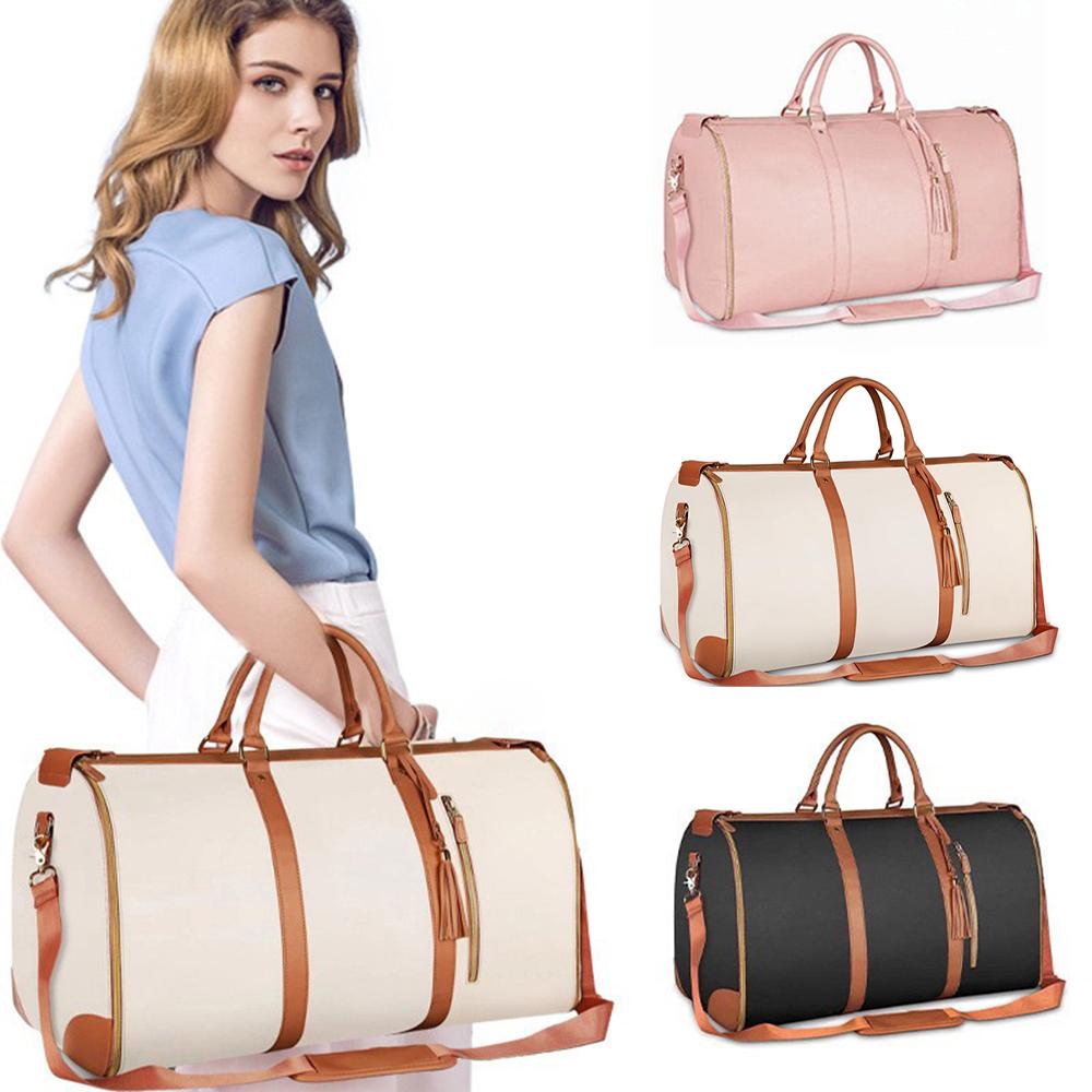 Pink PU Leather Storage Bag, Foldable Storage Clothing Luggage Bag, Women's Shoulder Bag, Diagonal Cross Bag