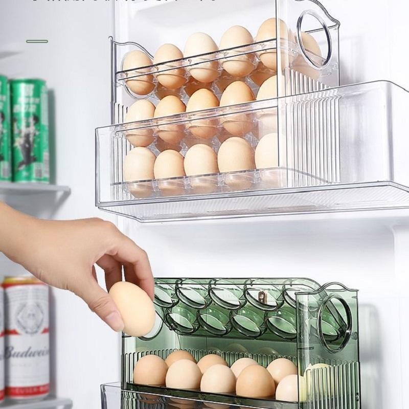 Space-Saver Auto-Flip Egg Box Freshness Assured Refrigerator Door Egg Holder Kitchen Organizer Kitchen Large Capacity Egg Fridge