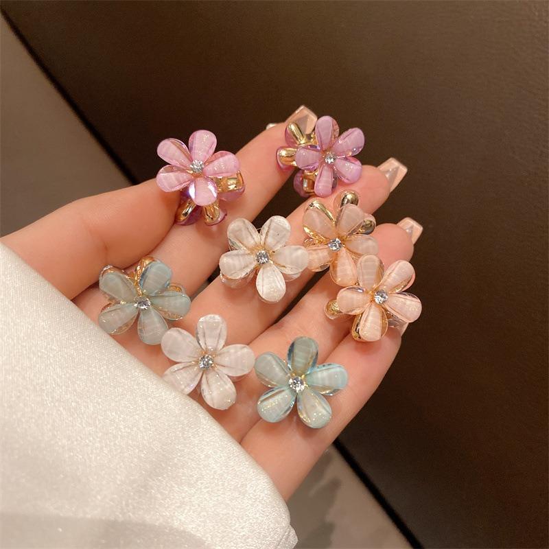 5/10PCS.Spring Camellia Hollow Small Claw Clips for Kids. Minimalist Floral Design, Durable Metal Texture, Secures Bangs Well.