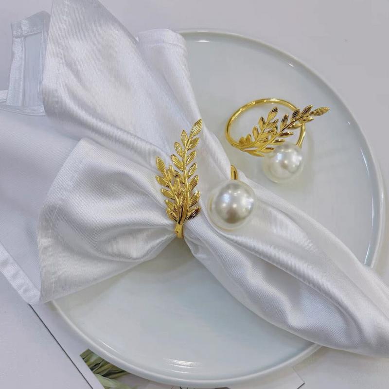 Pearl Napkin Rings 6 Pieces Table Buckle Decorations Gold Pearl Serviette Ring Buckle For Wedding Christmas Halloween Home