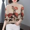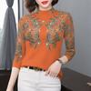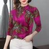 Women's Floral Print Fleece-Lined Slim-Fit Top with Semi-High Collar and Long Sleeves – Ideal for Middle-Aged and Elderly Moms.