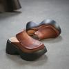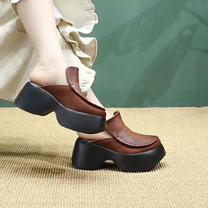 Johnature Height Increasing Outdoor Platform Slippers Genuine Leather Round Toe Thick Soled Women's Shoes