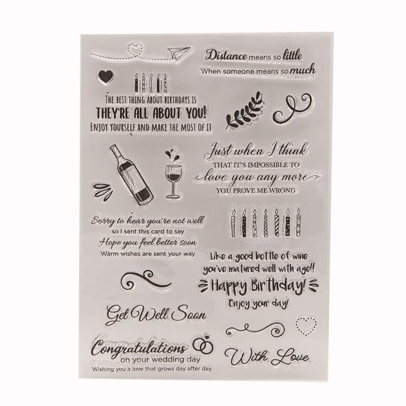Decorative Background Silicone Stamp, Greeting Word Pattern Clear Stamp. Great for making Birthday Card, Birthday party invitations, photo album, scrapbooking, paper bookmarks or craft embellishments.