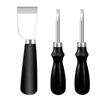 Different size of leather edging beveler tool leather skiver tool for different skiving beveling Burnishing need: 0.8mm 1.0mm 1.2mm 1.5mm. NOTICE: DIFFERENT SET CONTAINS DIFFERENT SIZE OF LEATHER EDGING SKIVING BEVELER TOOL.