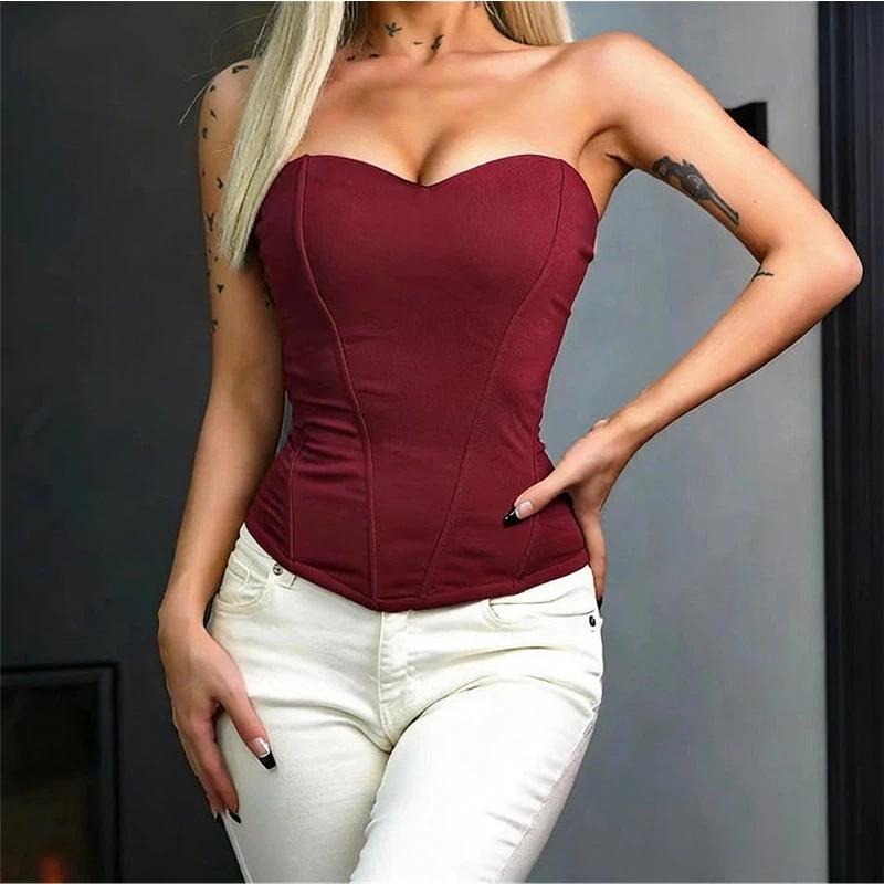 Fishbone Shapewear Women's Bustier Top With Built-in Padding Slimming High-Waist European Fashion Bandeau Corset Stylish Body Shaper Dress Wear