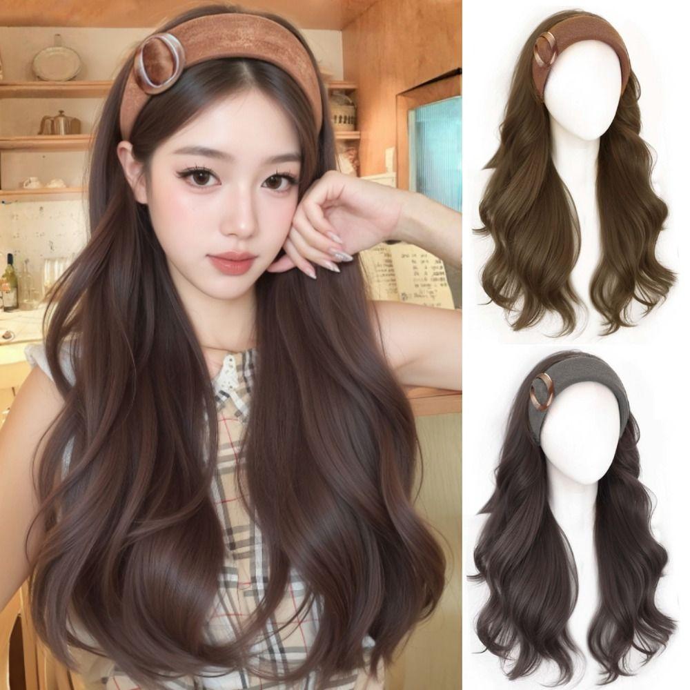 Hair Hoop Half Headband Wig Korean Style Long Wavy Curly Hair Synthetic Velvet Headband Wigs Women