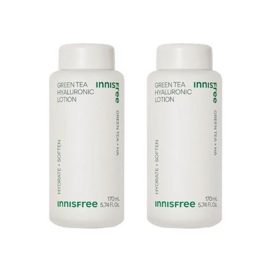 Keep your skin hydrated and resilient with Innisfree Green Tea Hyaluronic Lotion. Infused with green tea extract and hyaluronic acid, this lightweight lotion delivers long-lasting moisture while strengthening the skin barrier. Its smooth, fast-absorbing texture leaves skin soft, plump, and refreshed. This set includes 2 bottles, perfect for extended use or sharing.
