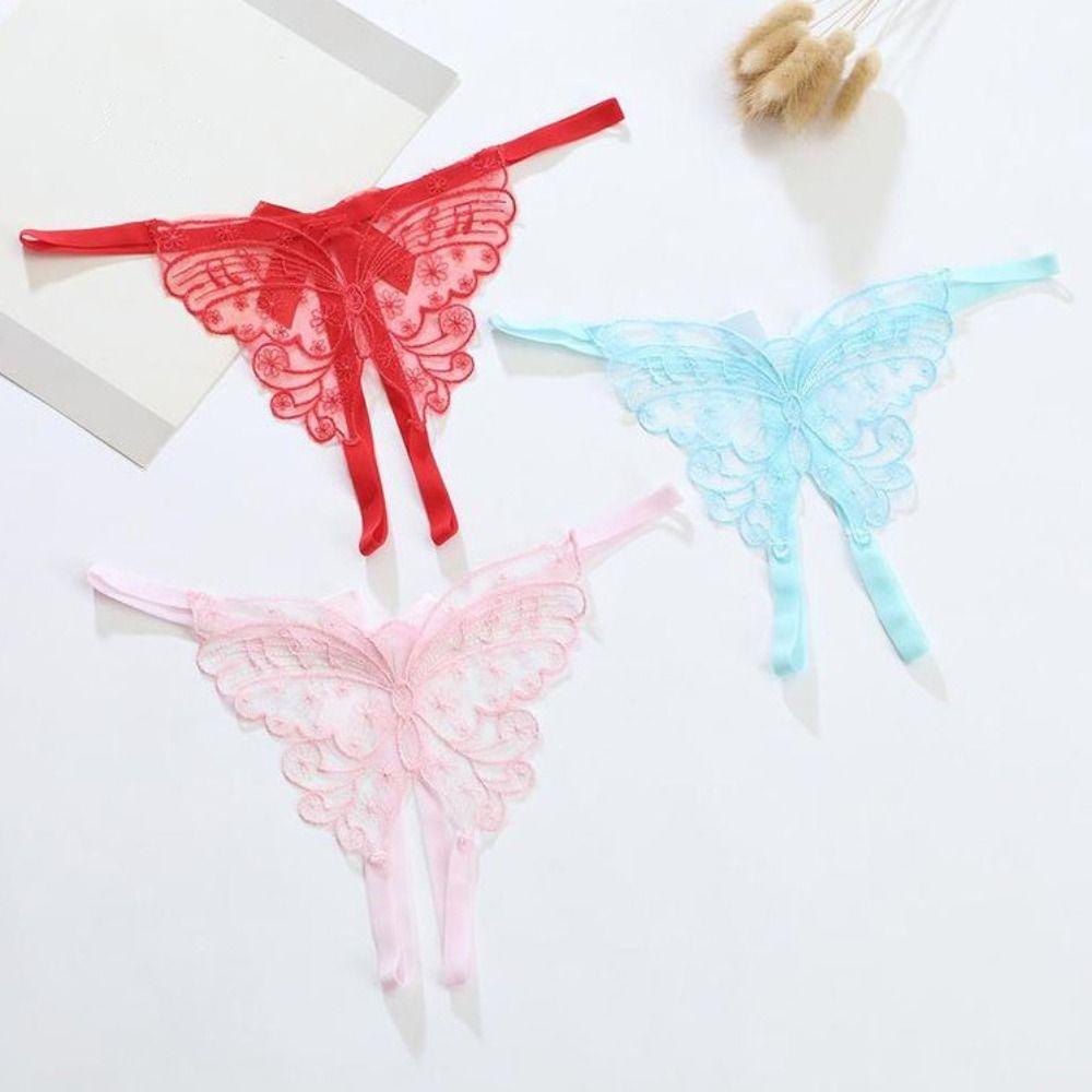 Thin Belt Lace Embroidered Panties Butterfly Bowknot T-Pants Lingerie Sexy Mesh Thongs Gift
