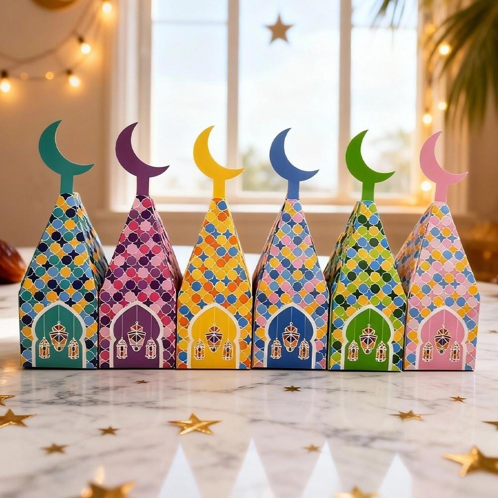12Pcs Moon Castle Pattern Eid Mubarak Gift Box Paper Moon Lantern Box Treat Box Home Decoration