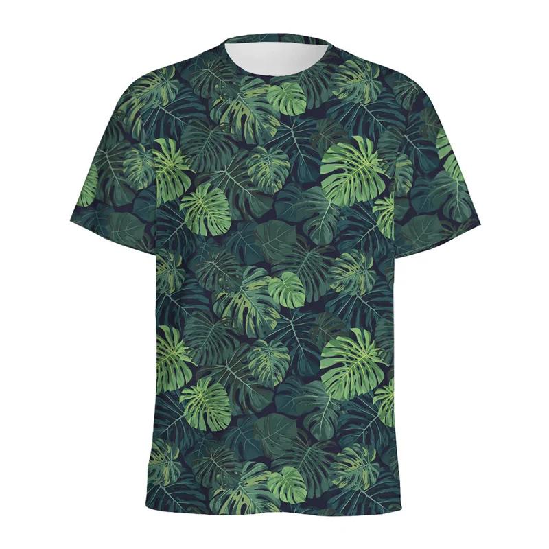 Tropical Palm Tree Hawaiian Pattern T-shirt Men Plants Leaf 3D Printed T Shirt Summer Short Sleeves Streetwear Round Neck Tees