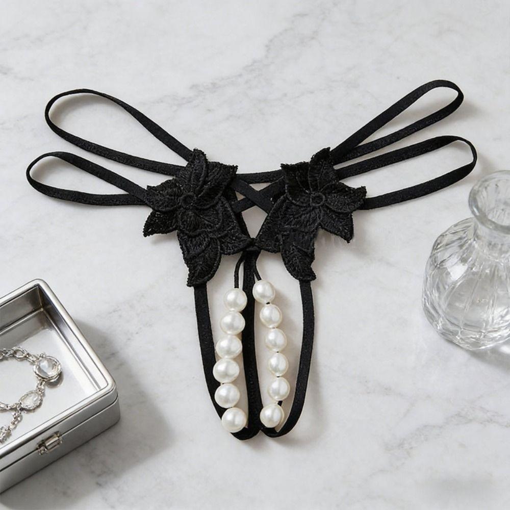 Open Crotch Pearl Lace Underwear Low-waist Mesh Lace Briefs Women's Bigsize Thong Female