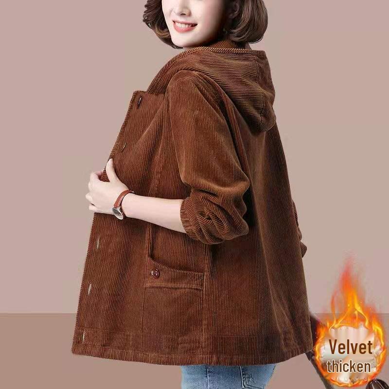 Elevate your autumn and winter wardrobe with this stylish women's corduroy jacket. Designed with a thick velvet texture, it combines comfort and elegance, offering a simple and loose fit that is perfect for plus-size figures. The slimming Korean style brings a modern touch to any outfit. Crafted from high-quality polyester material, this jacket features long sleeves for added warmth. The versatile design includes both a round and stand neckline, allowing you to personalize your look while staying cozy throughout the colder months.