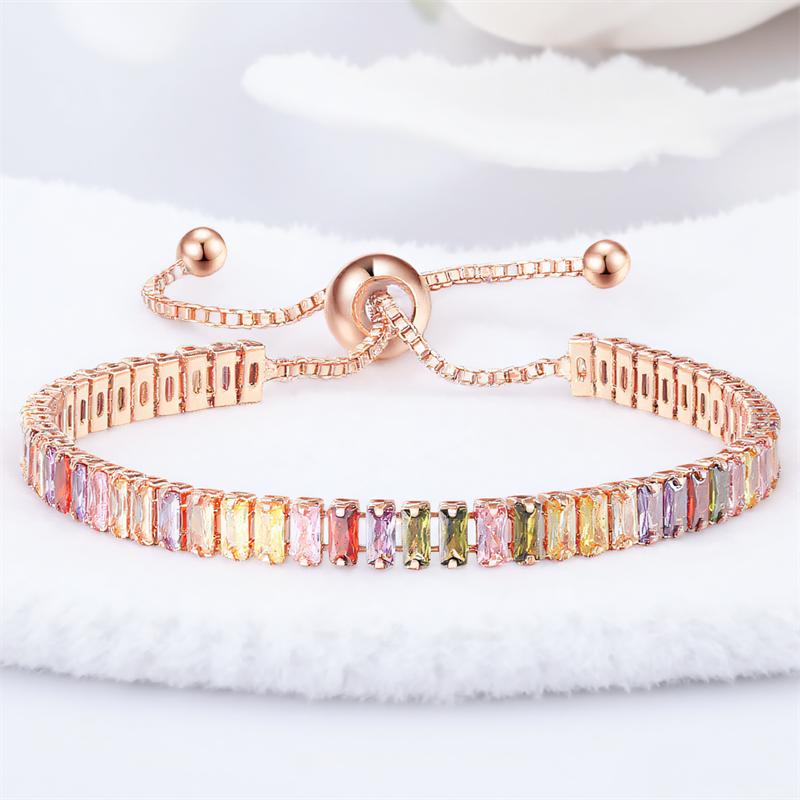 2x4mm Rectangle Stone Rainbow Crystal Multicolor Zircon Bracelets for Women Rose Gold Silver Color Chain Bracelet Bridal Jewelry