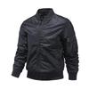 Introducing a stylish and versatile men's jacket, perfect for spring and autumn. This military-inspired outerwear features a stand neckline and long sleeves, providing a sleek and contemporary look. Crafted from medium-thickness nylon material, it offers both comfort and durability. The solid pattern adds a classic touch, making it a timeless addition to any wardrobe. The jacket is enhanced with chemical fiber blended fur material, ensuring warmth and coziness on cooler days. Ideal for casual outings, this baseball-style jacket effortlessly combines functionality and fashion.