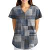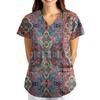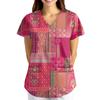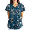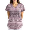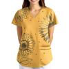 Plus SizePrinted Scrub Working Uniform Tops For Women's Cross V-Neck Print Short Sleeve Fun T-Shirts Workwear Tee With Pockets