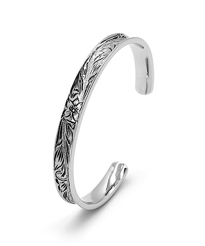Stainless Steel Bangle Featuring Hawaiian-Inspired Engraving