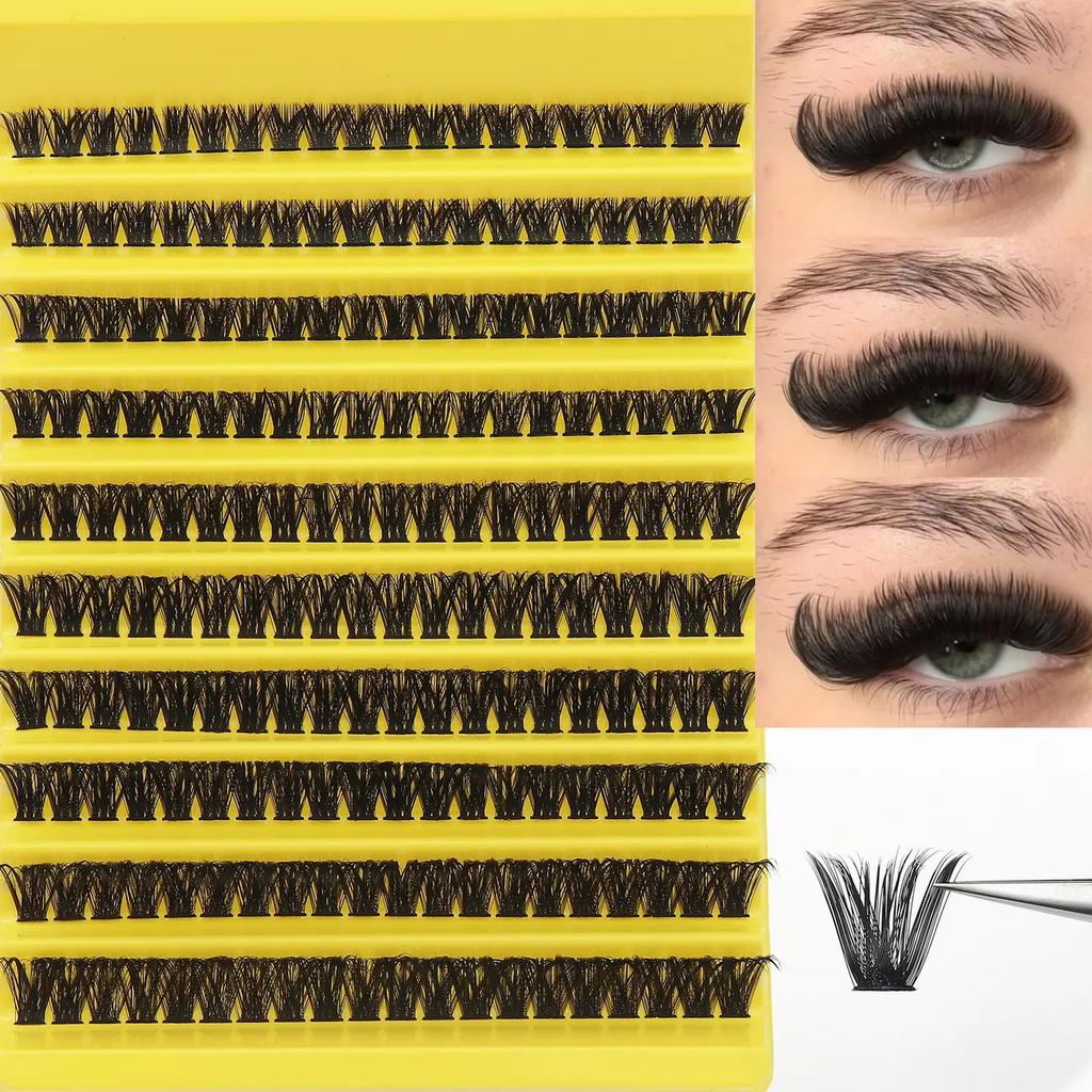 8-16mm Mixed Size D-Curl Design 80D Russian Curl False Eyelashes, Natural Soft Fluffy Cluster Fake Lashes, Wispy Smoke Effect DIY Lashes