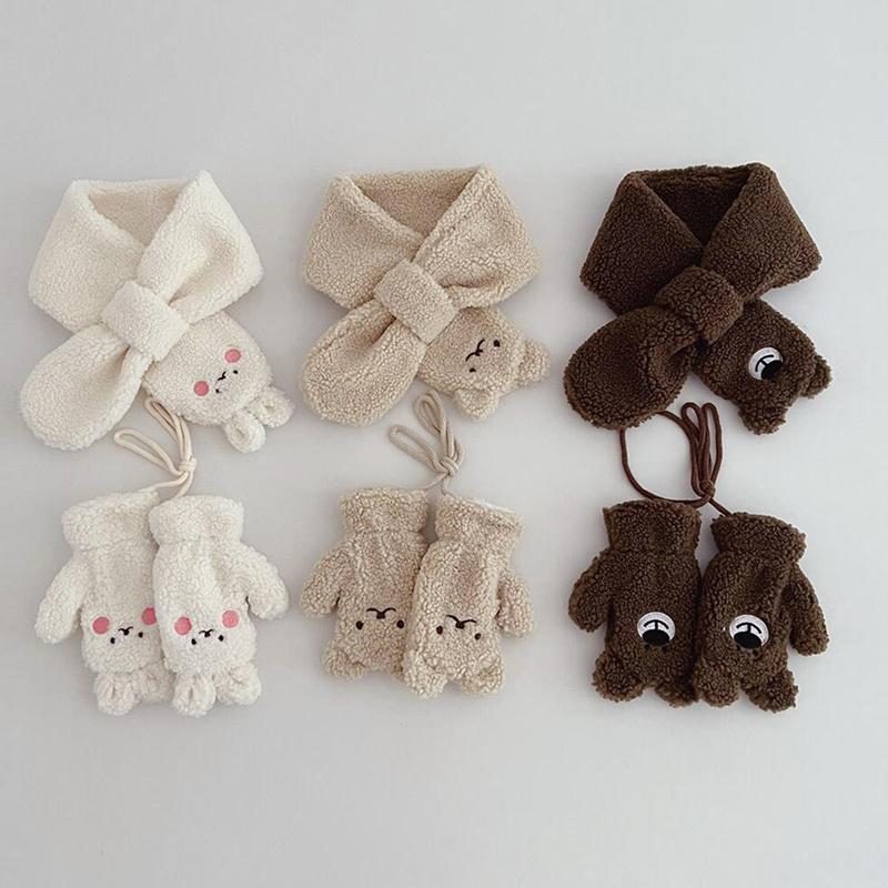 Cute Plush Baby Gloves Bear Embroidered Toddler Mittens Winter Thick Warm Cashmere Kids Full Finger Gloves
