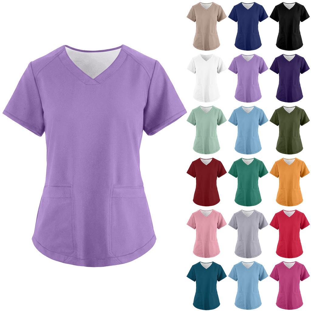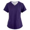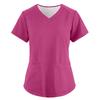 Women's Fashionable Loose-Fit Short-Sleeve V-Neck Pocket Workwear Top