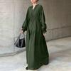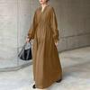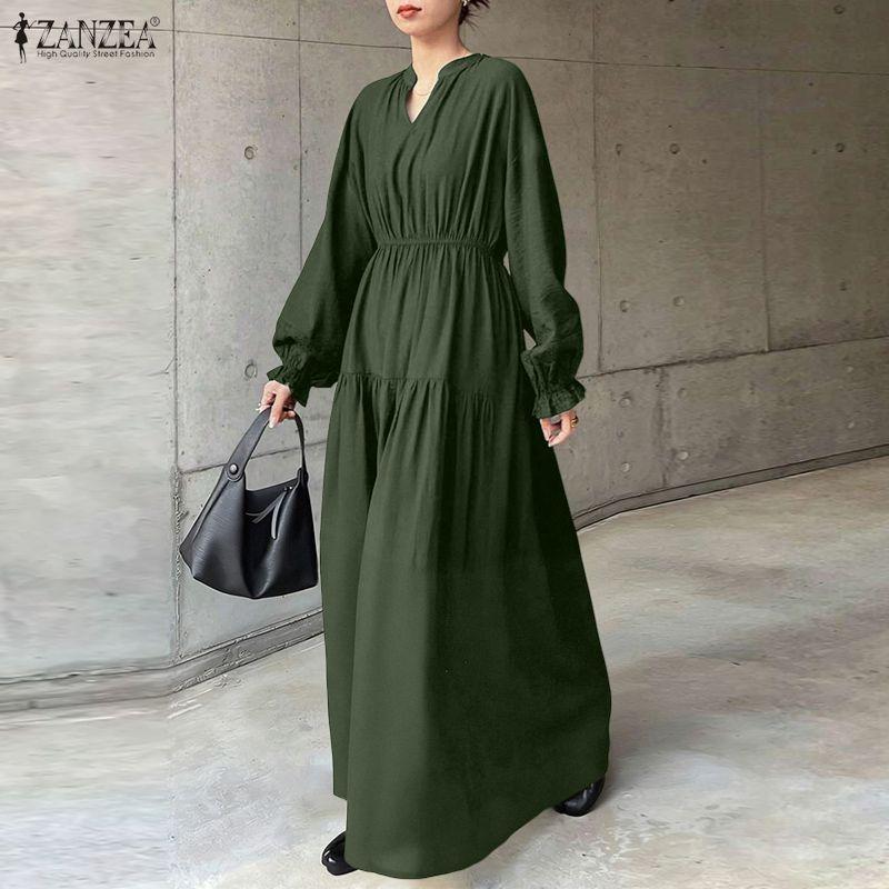 ZANZEA Women Casual V-Neck Long Sleeve Holiday Loose Long Dress