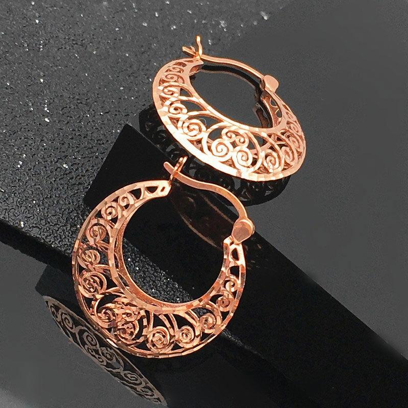 Exquisite 585 Purple Gold Earrings Rose Gold Plated Russian Fashion Design Luxury Hollow Pattern Exquisite Earrings