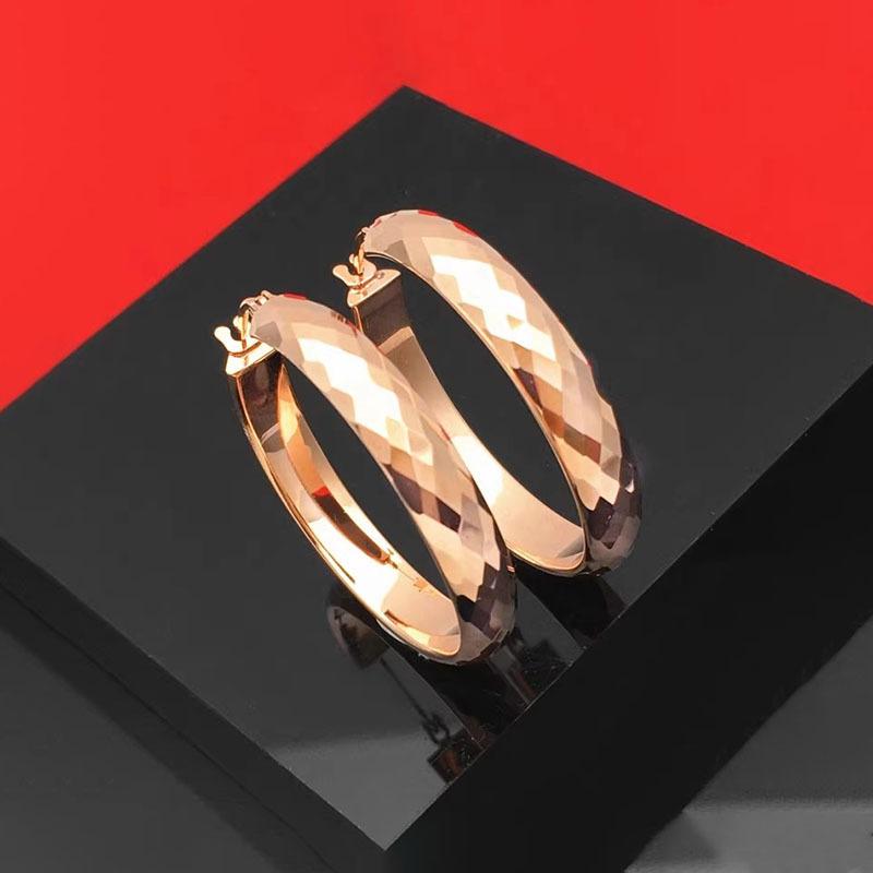 Exquisite Russian 585 Purple Gold Prismatic Smooth Car Flower Laser Earrings Rose Gold Plated Shiny Circle Earrings