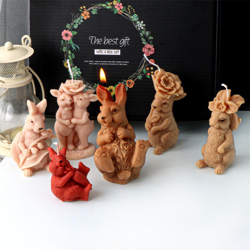 3D Flower Rabbit Candle Silicone Mold DIY Soap Resin Plaster Animal Making Tool Easter Bunnies Shape Cake Decorating Mould