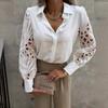 New Spring and Summer Women's Solid Color Lace Stitching Hollow Lapel Fashionable Shirt