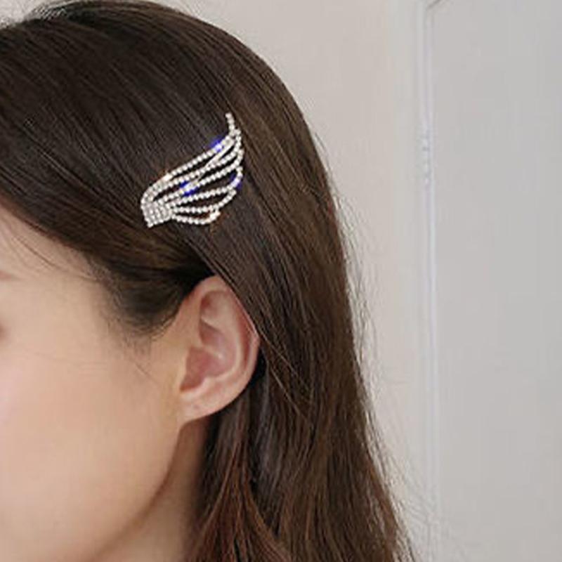 Girls Side Hairpin Full of Diamond Temperament Girl Side Bangs Edge Clip 1Pcs Korean Shining Rhinestone Angel Wings Hairpin