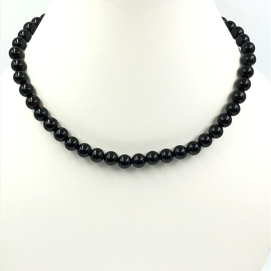 8mm Natural Black Onyx Gemstone Round Beads Choker Handmade Black Stone Necklace 17-20" For Wedding/Birthday 8BN-48