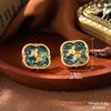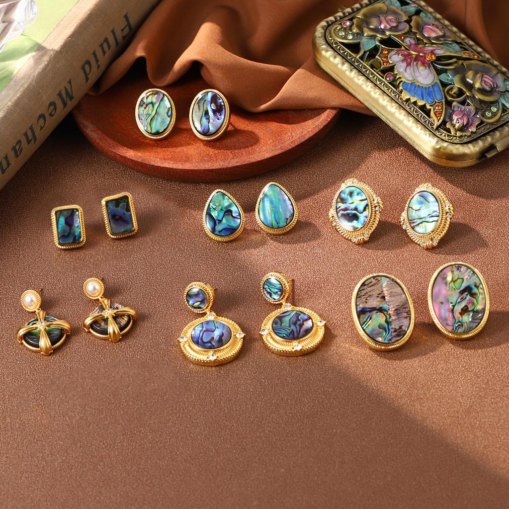 Court Style Niche Abalone Shell Stud Earrings French New Temperament Earrings Retro Geometric Diamond-set Premium Earrings