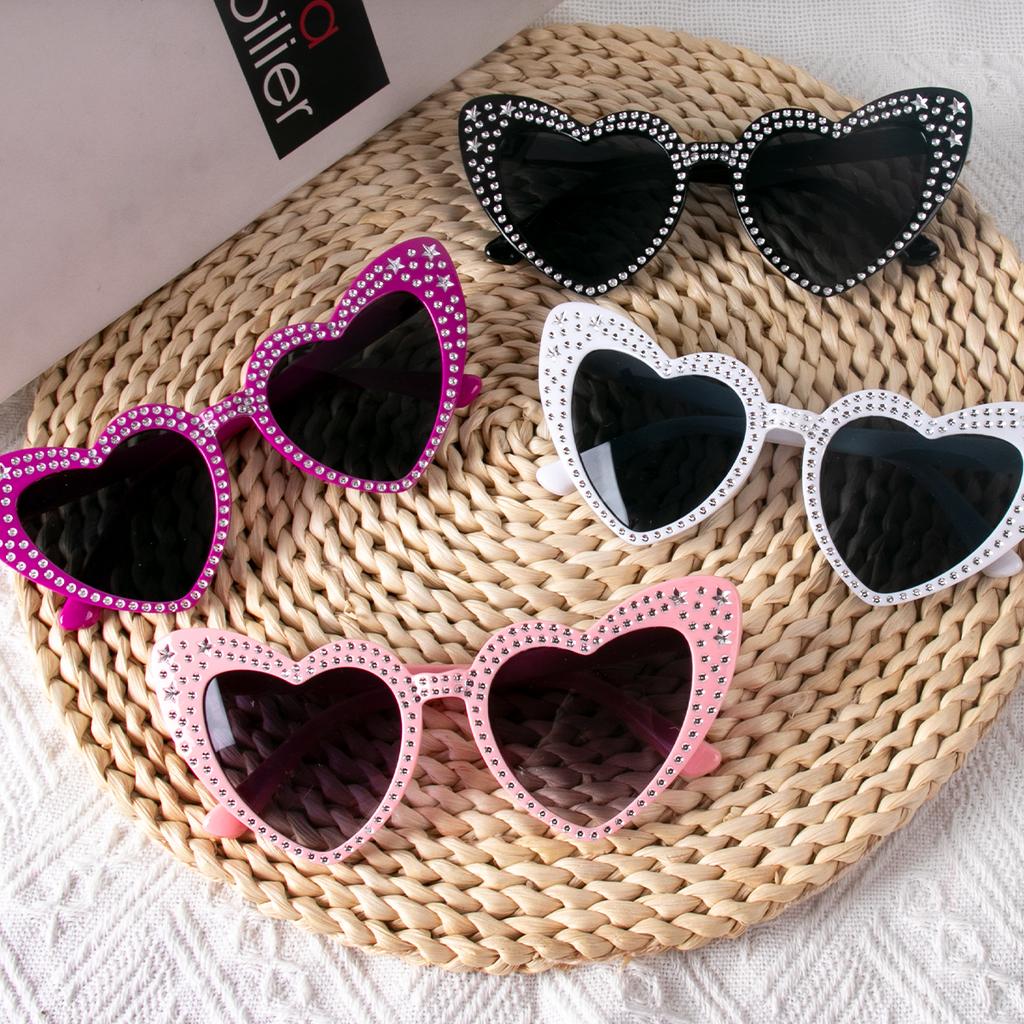 Sparkling Rhinestone Love Heart Frame Sunglasses for Women Wedding Decoration Bridesmaid Gift Summer Beach Party Sun Glasses