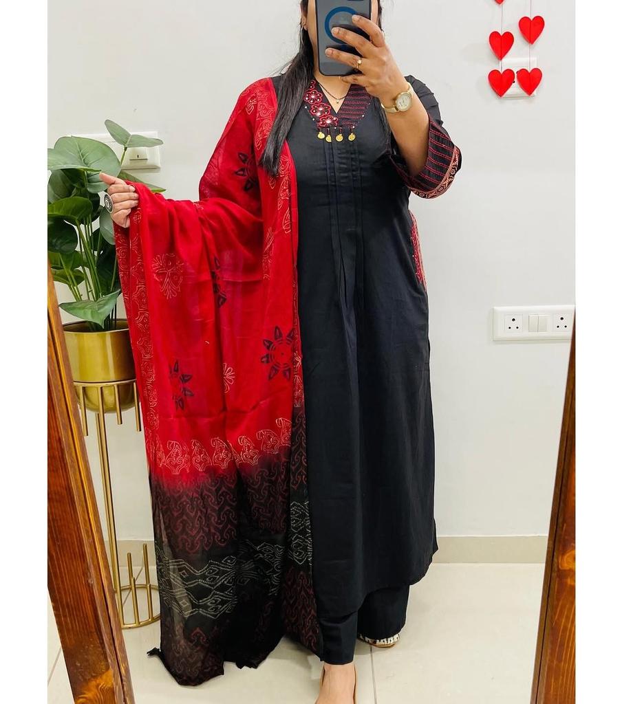 Beautiful V-neck Cotton Kurta Pant Dupatta Set Women Bollywood Top Tunic Salwar Suit
